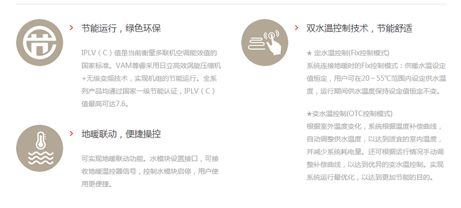 日立中央空調(diào)傾情打造VAM尊睿系列,為用戶提供適用于別墅、大戶型、精致公寓以及小戶型的不同系列產(chǎn)品,從高端人群到小康之家,從敏感的兒童到體弱的老人,全方位滿足各類人群的使用需求。